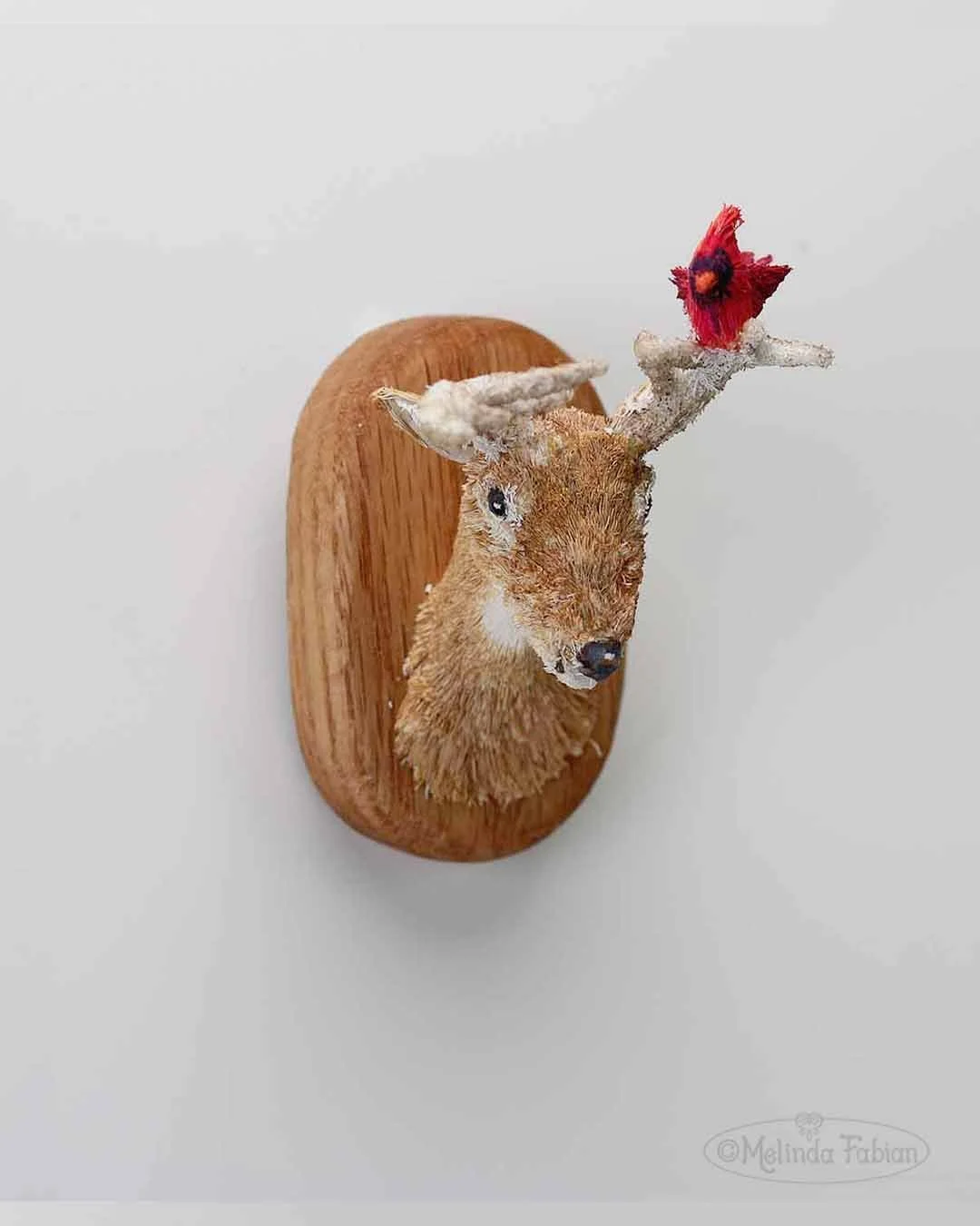 As Melinda creates her paper sculptures, a story often emerges. She felt that this cardinal and young buck would be best of friends. The cardinal loves to catch a ride on this young buck's antlers as they explore the forest for nearby treats. They become "Best Friends Forever" as the go on many adventures, trading their latest stories.